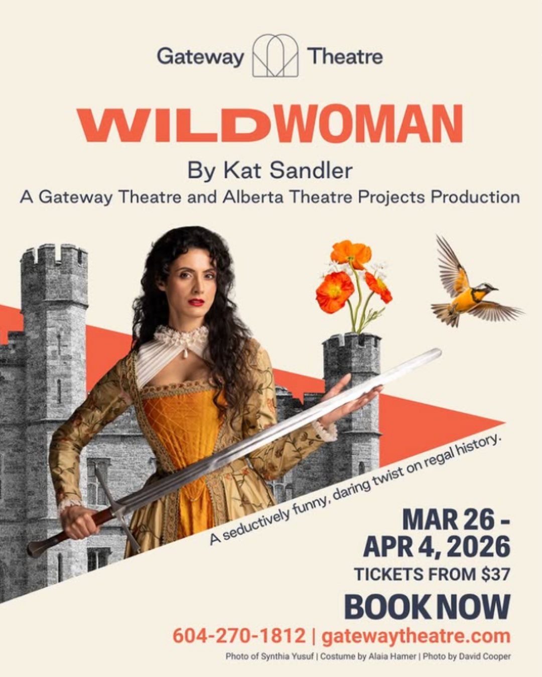 Looking for a parents’ night out while the kids are at home or with a sitter? Gateway Theatre presents Wildwoman, a bold and darkly funny new comedy about Catherine de Medici and the drama of the 16th-century French royal court. This clever, adult-oriented production takes a daring look at history with sharp humour, intrigue, and a story inspired by the legend behind Beauty and the Beast. Please note: this is an R-rated production and not intended for children, but it could be the perfect theatre outing for parents looking to enjoy an evening of live entertainment together. Wildwoman runs March 26 – April 4, 2026 on the Gateway Theatre Mainstage. Learn more and get tickets here.